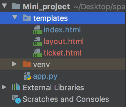 templates : 웹 서비스의 html 파일들을 모아두는 폴더이다. 반드시 'templates' 라는 명칭으로 폴더를 생성해야 한다.